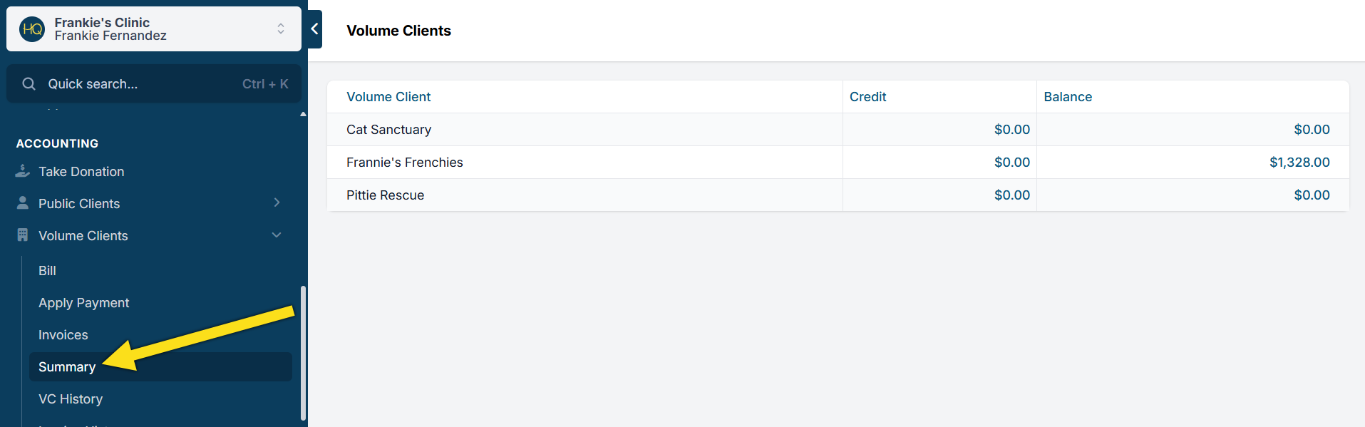 If the Volume Client has an available client credit, you must generate their invoice first. Then, apply the client credit to the invoice as a form of Payment. Read how to apply payment for a VC (blank)HERE.