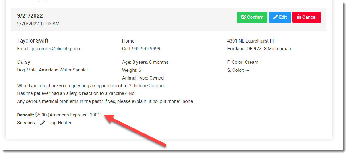 No extra steps are required to refund the deposit of a pending e-appointment request. Simply canceling the request will refund the client. A separate email will be sent to the client notifying them of the refund action. It may take 5-7 days for the refund to hit the client's card.