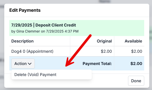 - Click Action on the payment.