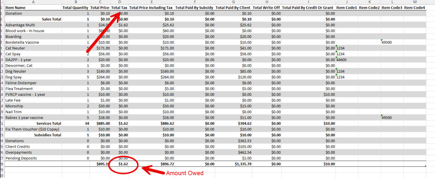After setting up the taxable items for your clinic and recording payments for those items, you can run a Financial Export to provide the total sales tax collected.