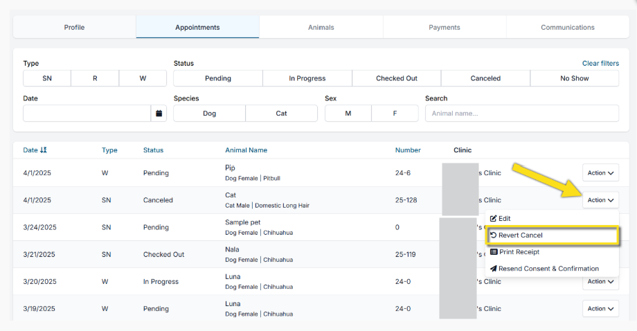 8.1.4. Revert a Canceled Appointment