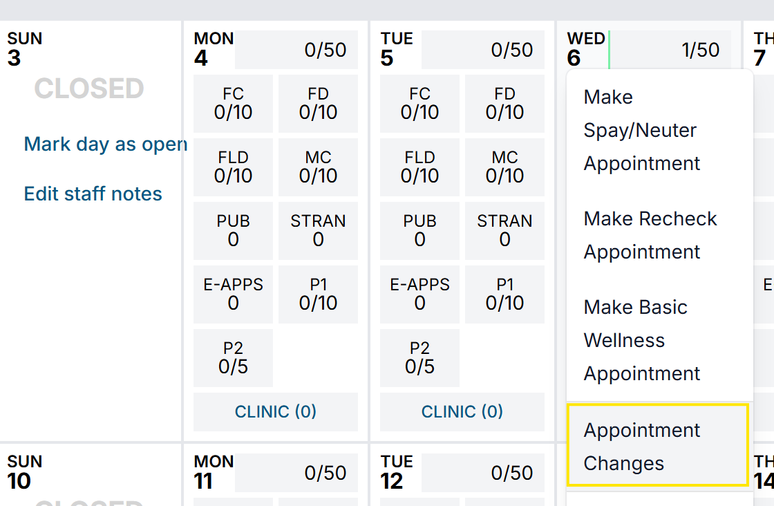 - Select Appointment Changes.