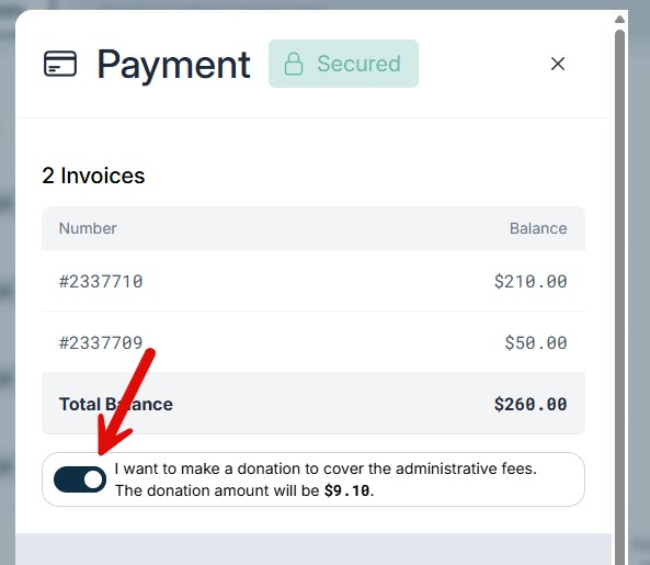 When you send a client an e-payment link, the DAF is automatically included in the total payment amount.