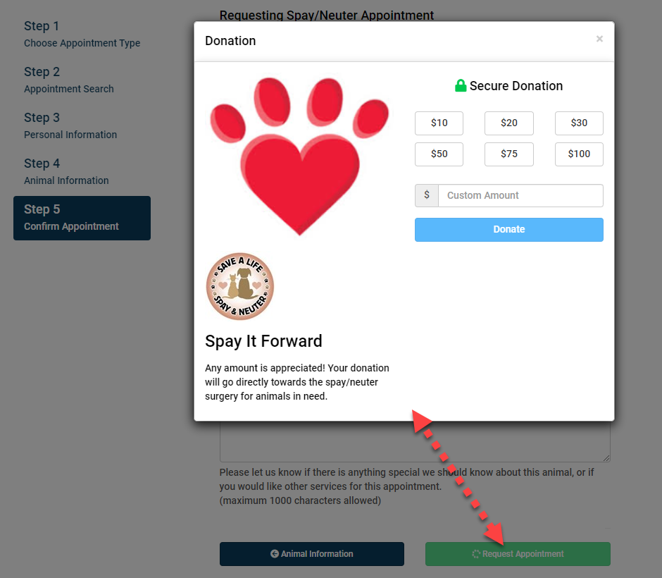 - Request Appointment -- On the last step of the E-app form, the client will click "Request Appointment."