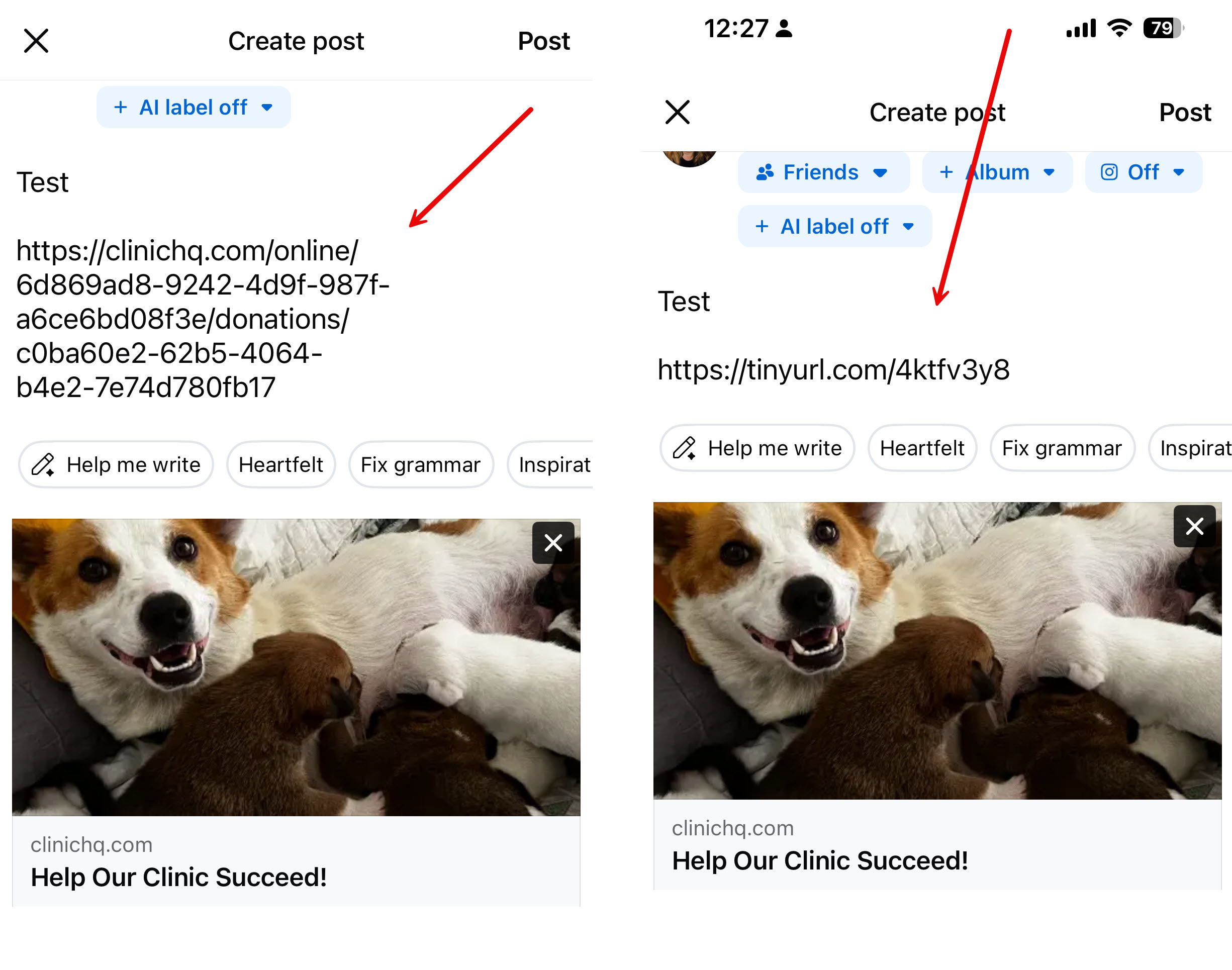 - In Tinyurl, you copy and paste the long link into the shortener and then copy and paste the shorter link into your post.