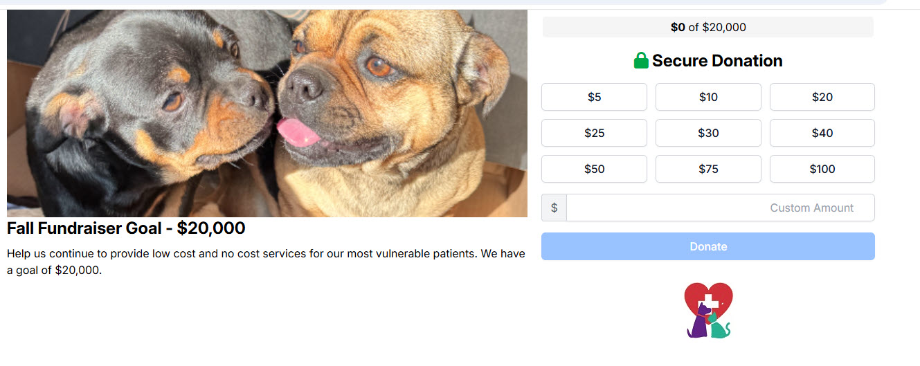 The Goal Widget allows your clinic to set a goal, say $5,000 and to measure the amount raised against the goal. This is a very useful tool for rallying your supporters to meet a fundraising goal.