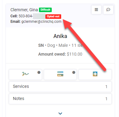 Throughout HQ we’ve inserted a visual tag for clients who have opted out to receive text messages. This is helpful if you are texting the client throughout your day for any reason. For example, in e-Lobby you can text for pick-up (which is a bazillion times faster than calling) but if they’ve opted out of text messages, they won’t be getting that ping. So, now you can visually see who has opted out.