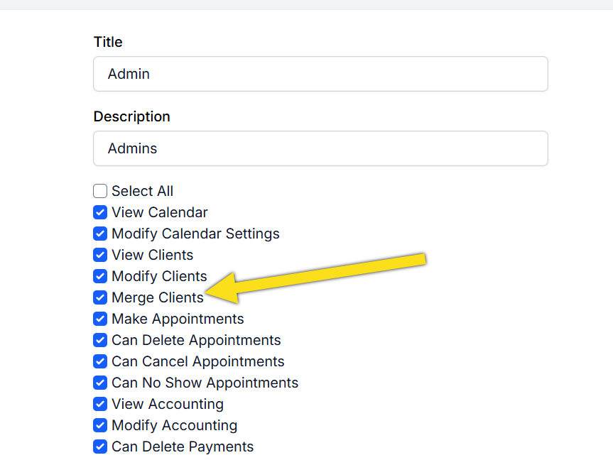 - Tick the tick box next top Merge Clients to allow users with this role to Merge Clients or Animals and click Save. Users with this role will need to log out and back in for it to take effect.