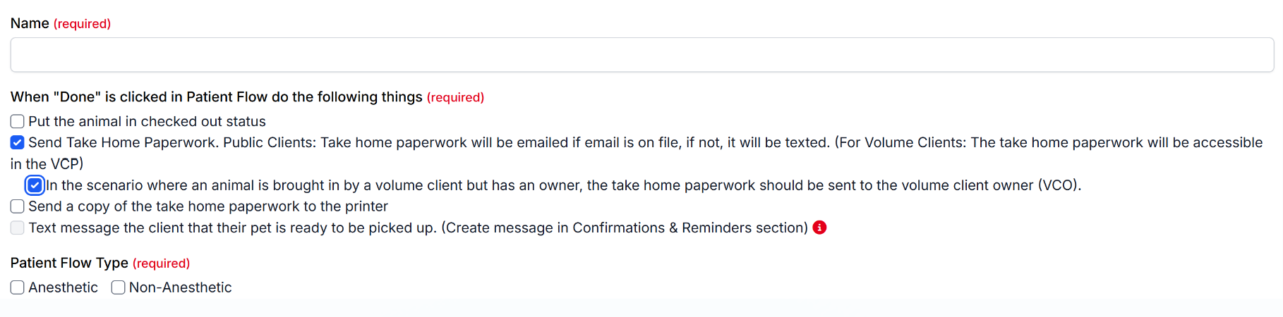 - To automatically send home paperwork to volume client owners, you will need to set up set up an automation under patient flow.