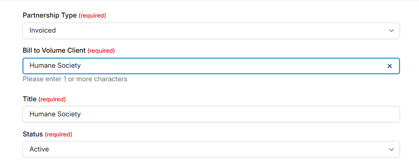 - From the Bill to Volume Client dropdown, select the appropriate volume client.