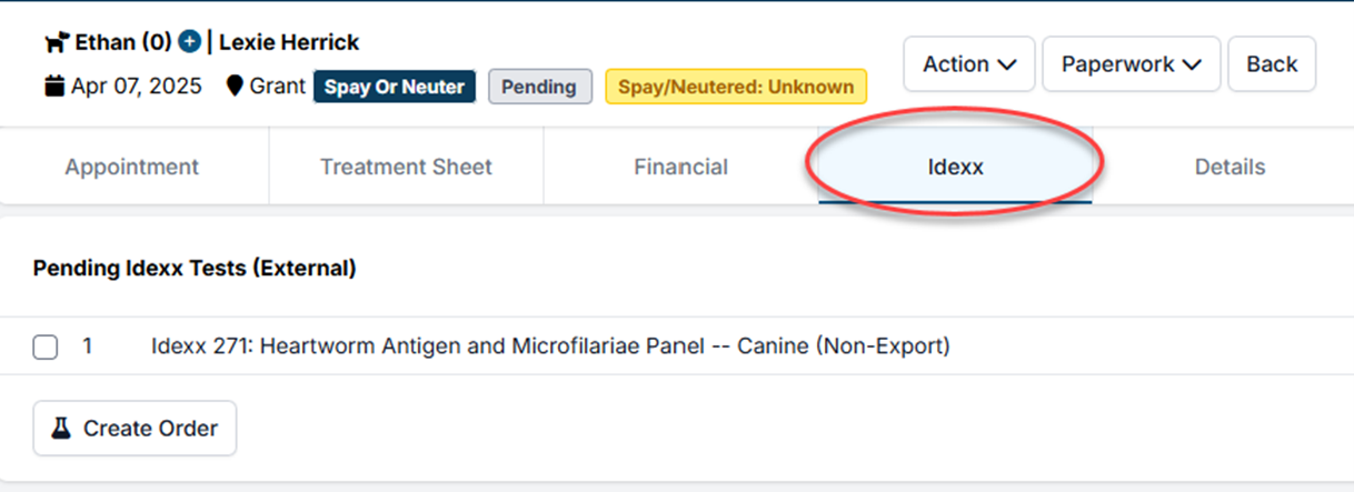 To order an IDEXX test, the correct service line item must first be added to the animal’s appointment.