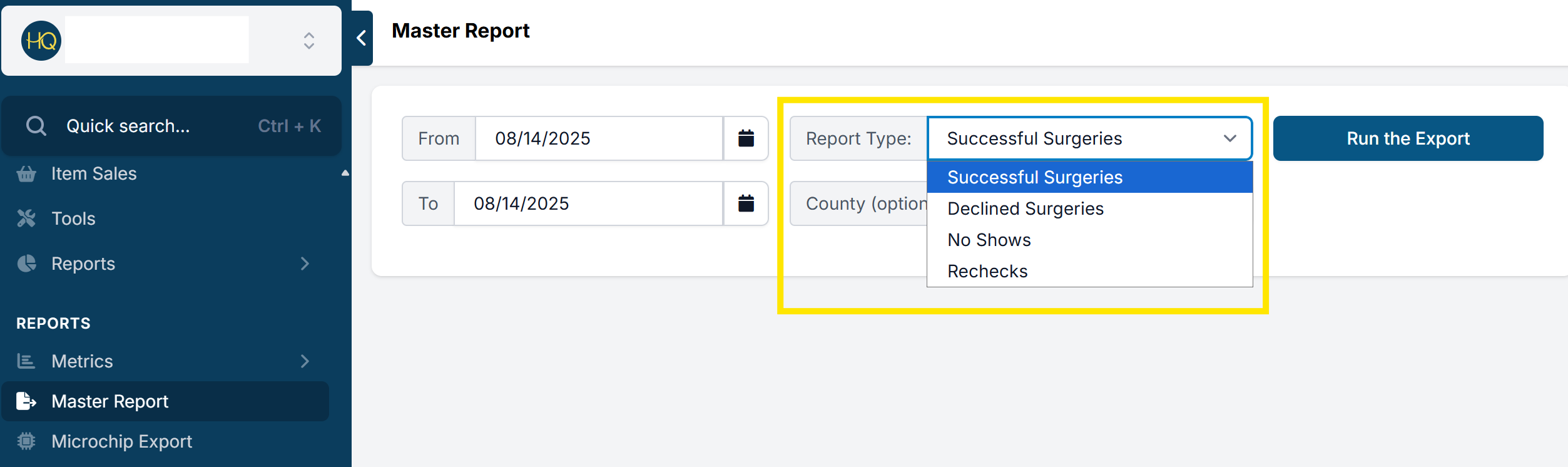 - The Master Report is one of the most complete and robust reports in HQ. It was previously tailored for the ASPCA.
