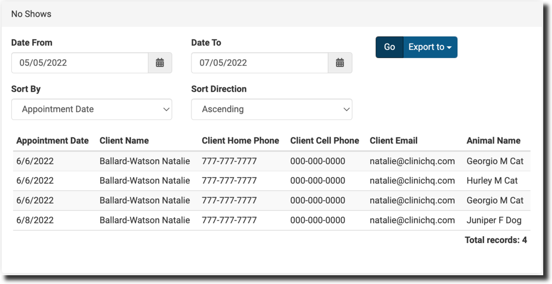- Clinics will often utilize this report to have volunteers or staff follow up with the client and make a new appointment.