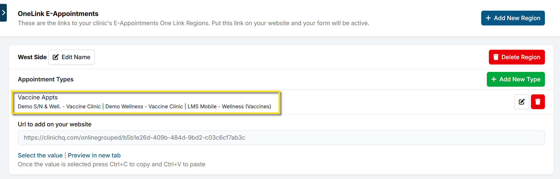 - Click +Add New Type (e.g., Vaccines, Spay/Neuter, Dentals). #_ Assign clinics and appointment types to each group.