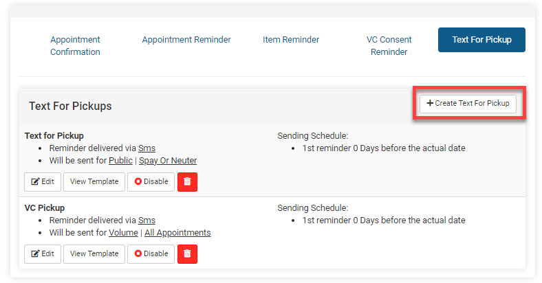 Example Text for Pick up wording: Public Spay/Neuter: Hi! #AnimalName# is out of surgery and is waking up. He/She will be ready to be picked up in 2 hours. We will see you then! Volume All Appointments Types Hi there! #AnimalName# is done. Please notify your transporter/foster parent that they will be ready for pick up in 2 hours.