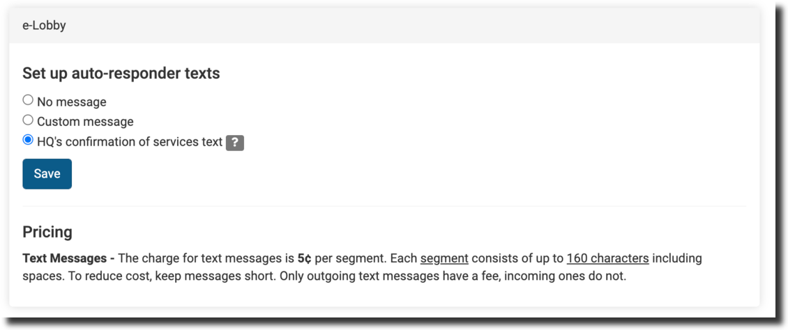 Here in settings, you can set up a custom or HQ default auto-response message for eLobby messages. Tick the relevant box and save.