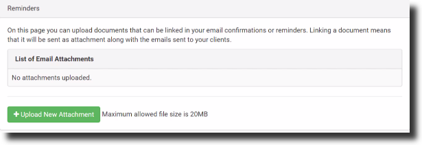 Once you have uploaded the email attachment, edit the confirmation or reminder email and tick the box next to the document title to include it in that email.
