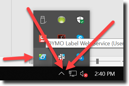 - Web Services is not turned on. Resolution: Go to the Start menu > Dymo > Dymo WebService to turn it on. You should now see it displayed in the lower right corner of your screen in the little “Show Hidden Icons” dialogue box (PCs only).