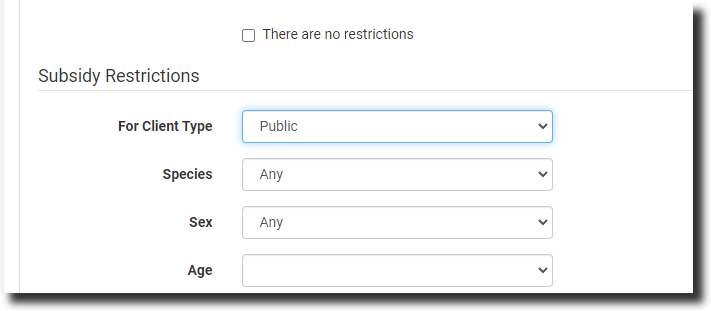 You may choose to untick the restriction field and assign this subsidy to only appear for public client appointments.
