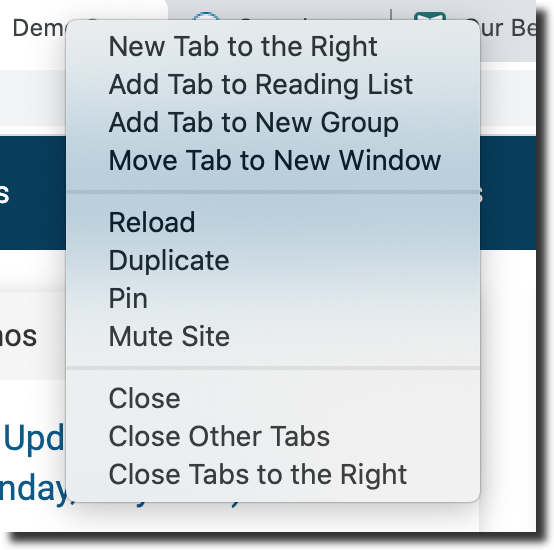 - To duplicate a tab, right-click an existing tab and select Duplicate from the menu.