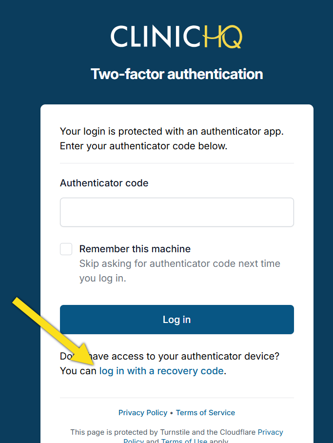 If you do not have access to your authenticator app and need to log in using a recovery code, follow these steps: