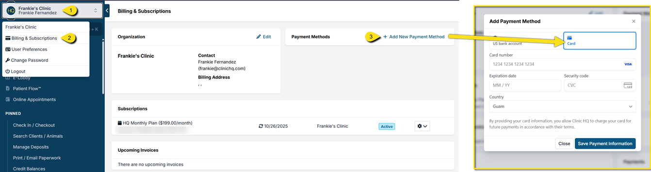 We've added the ability for you to pay for your HQ subscription via ACH. ACH (Automated Clearing House) is an electronic network for financial transactions. It’s widely used for direct deposits, bill payments, and business-to-business (B2B) payments. The benefit of switching to ACH payments for you is ACH reduces the risk of payment interruptions from expired, lost, or stolen credit cards. We are asking all of our clinics to switch to this method as it simplifies accounting issues and reduces fees for us here at HQ.