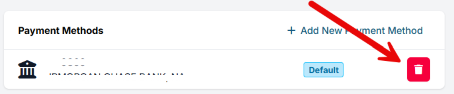 If you need to remove your ACH payment, simply click the delete button under payment settings.