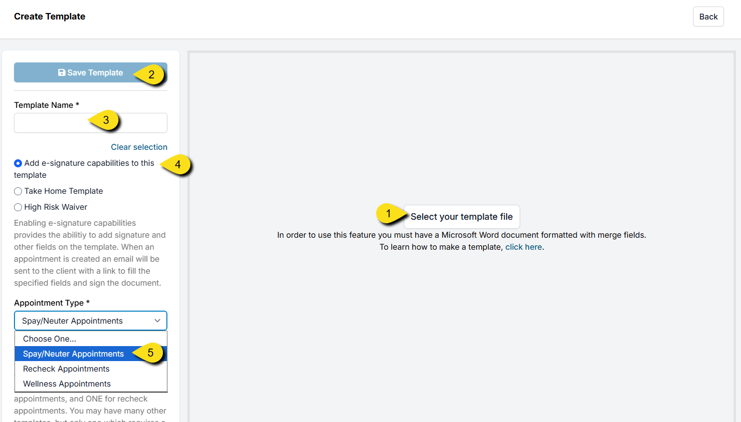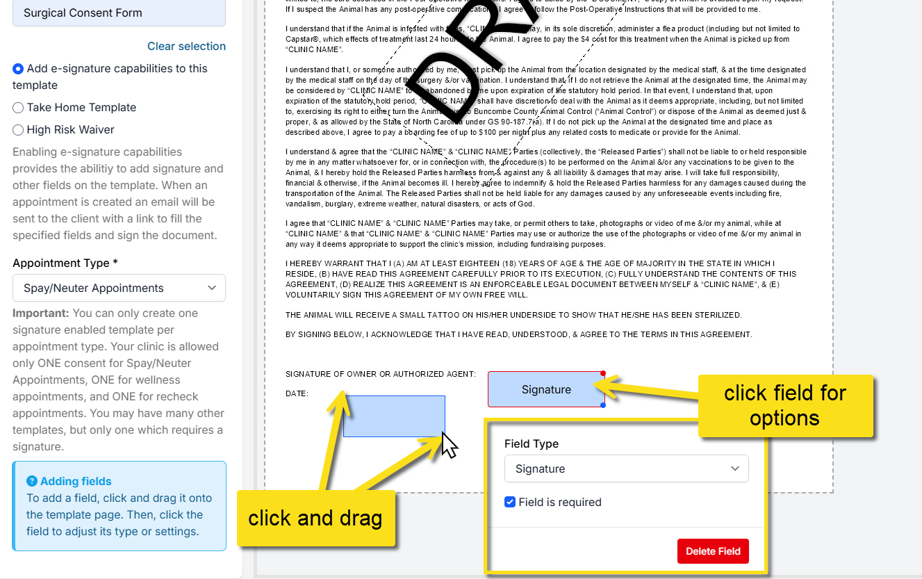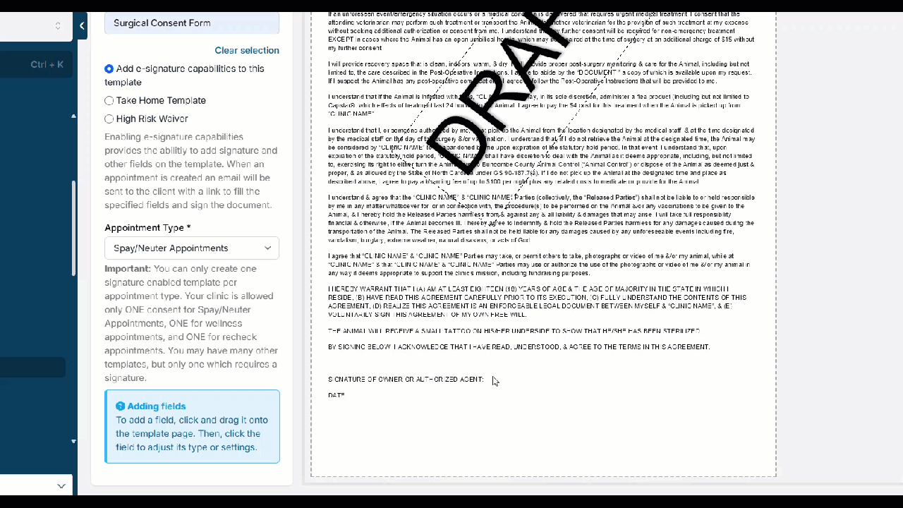 - For consent and take home documents, assign the corresponding appointment type. Note: You can only create one of each of these per appointment type.