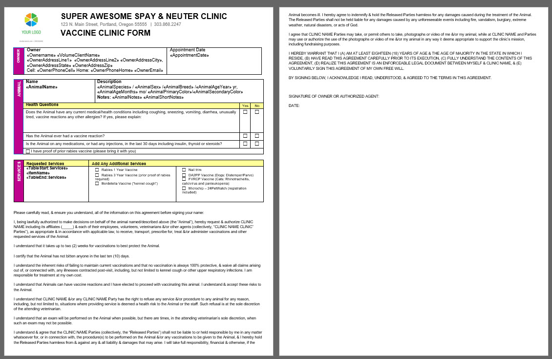- Copy and paste anesthesia-related terms from the spay and neuter consent form into the vaccine consent template.