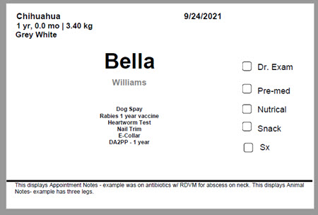 A cage card is a small identification card attached to an animal’s cage or kennel. It provides quick access to important information about the animal, helping staff identify patients and their needs—especially during spay/neuter appointments.