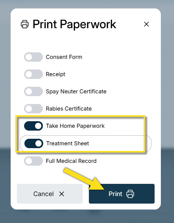 They can then toggle on the documents they wish to download or print. Once the desired documents are selected and the Print button is clicked, the paperwork will be downloaded directly to the client's browser.