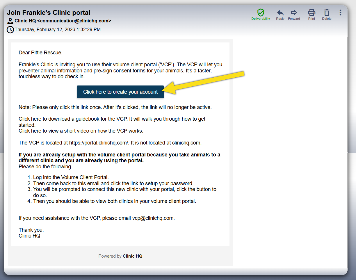 - If the organization already uses the Volume Client Portal with another clinic, they should follow the Connect Account instructions in the invitation.