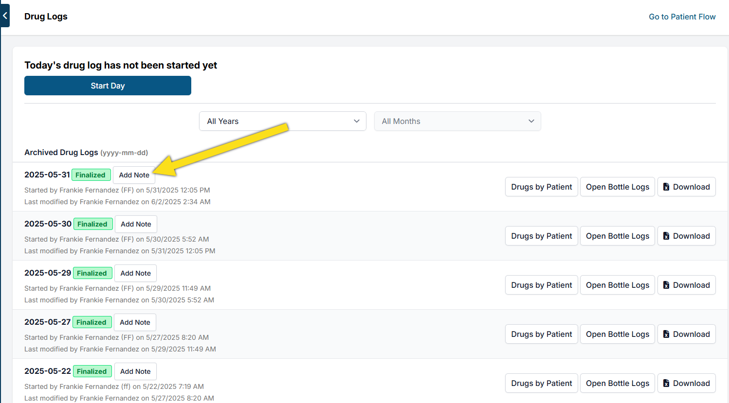 One way clinics use drug log notes is by having technicians enter their initials and a note such as "verified bottle balances" at the end of the day. This acts as a checkpoint so if the morning bottle balances are off, the staff can look back at the note and make sure the bottle balance was verified the evening before.