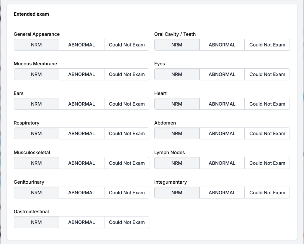 If that's your clinic, enable the extended exam under Settings > Patient Flow Setup. It will then give you these options.