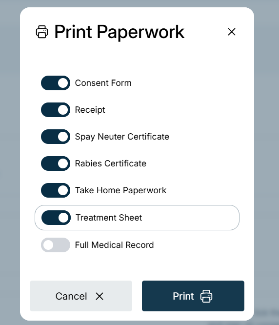 Note: Paperwork can also be accessed through the search bar. Simply search for the animal by name or number, then click Paperwork and follow the prompts.