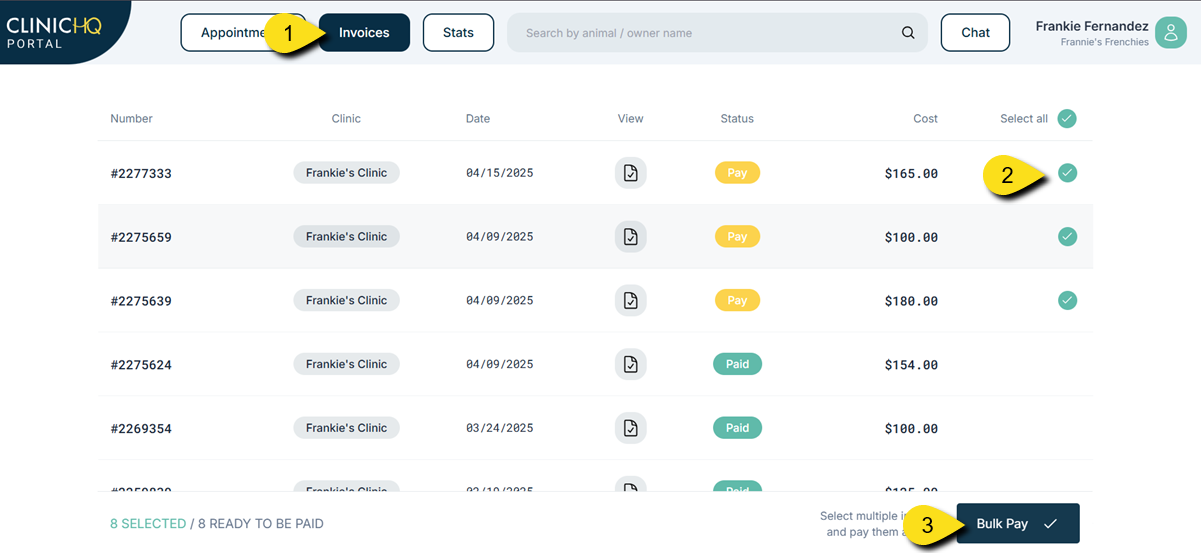 - The client will go to the Invoices page. Here they can view all paid and unpaid invoices.