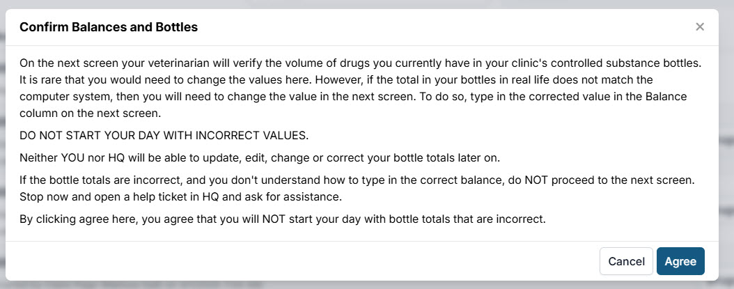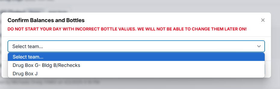 - Confirm bottle balances: review the drug name/concentration, balance, and bottle number for each bottle.
