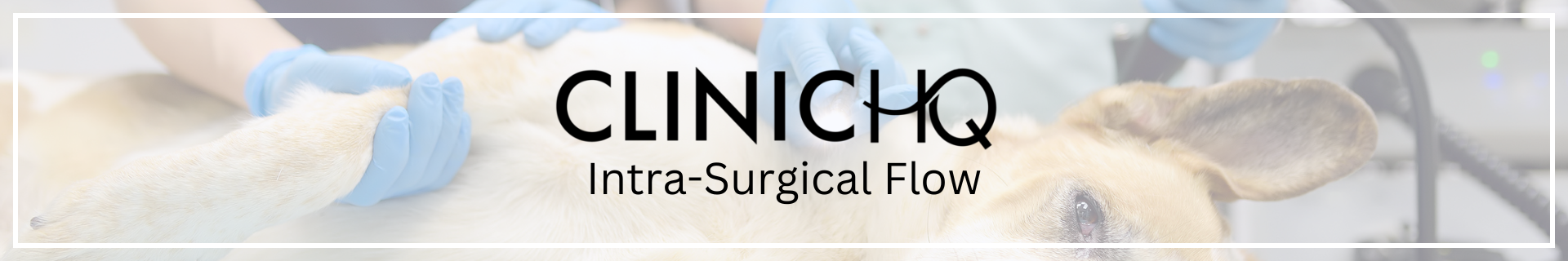 Intra-surgical flow includes drawing induction drugs, indicating suture type, indicating any surgical findings, writing more complex medical notes, prepping client correspondence including aftercare documents.