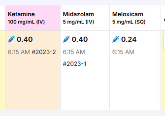 - Note that the drug doses are already keyed up with black clock icon next to them. This means they've not been pulled yet. It's simply displaying the drug amounts to pull up. If they have been pulled up, a blue syringe icon will appear next to them.