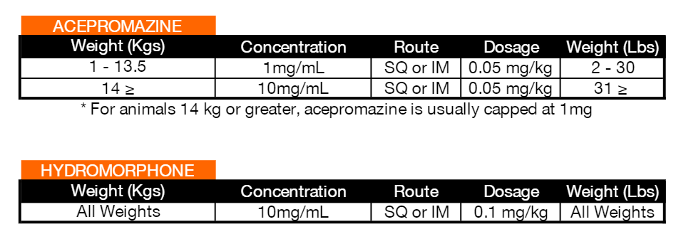 - Dogs should get a pre-med of acepromazine plus hydromorphone the moment they are admitted to the clinic.