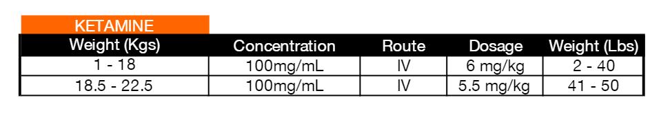 - Ketamine should round to hundredths for 0.90-5.0kg, and tenths for 5.1kg and up