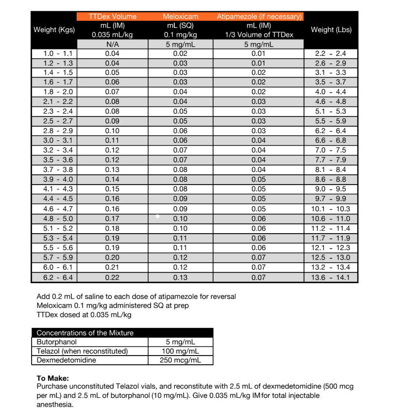 We support ASNA's drug protocols for cats, using TTDEX and Meloxicam.