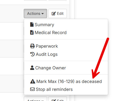 This will stop all reminders about this pet and mark them as deceased. It does NOT go into your clinic's statistics.