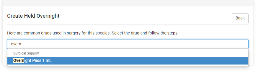 - Once on Surgery, an Internal Medical Note should be made for any drugs that had been drawn on Day 1 but administered on Day 2. All drugs can now be recorded as normal. You will mark the induction drug "Overnight Pass" as given in place of your typical drug that would be displayed there.