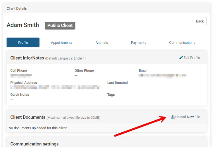 - Upload the image or scanned document to the client's profile under the 'Documents' section.